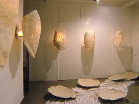 This art piece began when I asked my mother for the empty spools of thread that she, her mother, my grandmother and various other women in our extended family had used and collected throughout the years. They arrived via mail from North Carolina in a piece of beaten-up Samsonite luggage, and the moment I opened it I asked myself: Why did I ask for these? They were just empty spools, some with old string still on them, made variously of wood, plastic, metal and styrofoam. Over the years, I had seen these spools of thread around my home and somehow they spoke to me about a life lived, but initially I was unable to tie it all together.